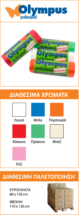 Οι σάκοι απορριμμάτων Olympus Professional χάρη στη μοναδική σύνθεσή τους περιέχουν έως και 50% λιγότερο πλαστικό. Έτσι αφήνουν το μικρότερο δυνατό οικολογικό αποτύπωμα, χωρίς να επηρεάζεται η αντοχή τους.